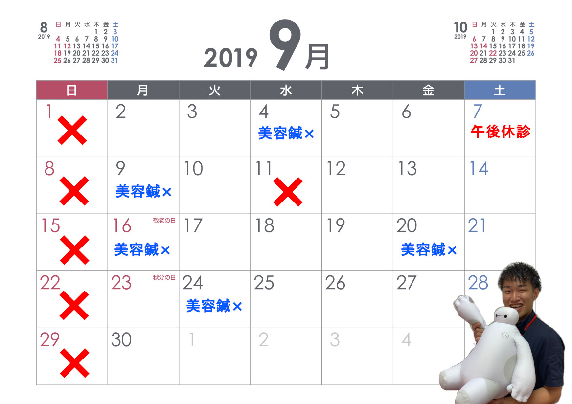 9月休診日のお知らせ - まいれ鍼灸整骨院・整体院 草津院・南草津院