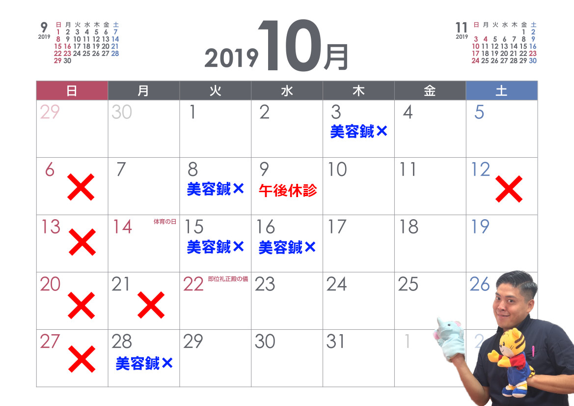 10月休診日のお知らせ - まいれ鍼灸整骨院・整体院 草津院・南草津院