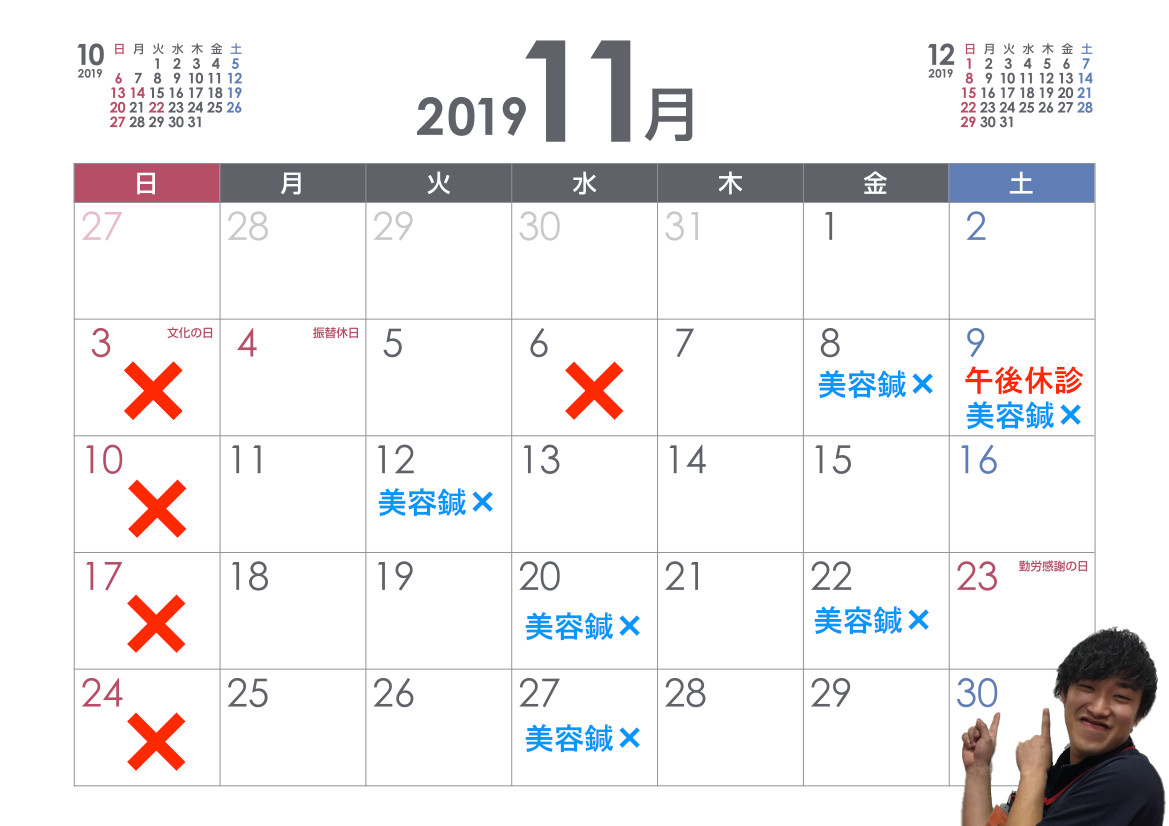 11月休診日のお知らせ - まいれ鍼灸整骨院・整体院 草津院・南草津院