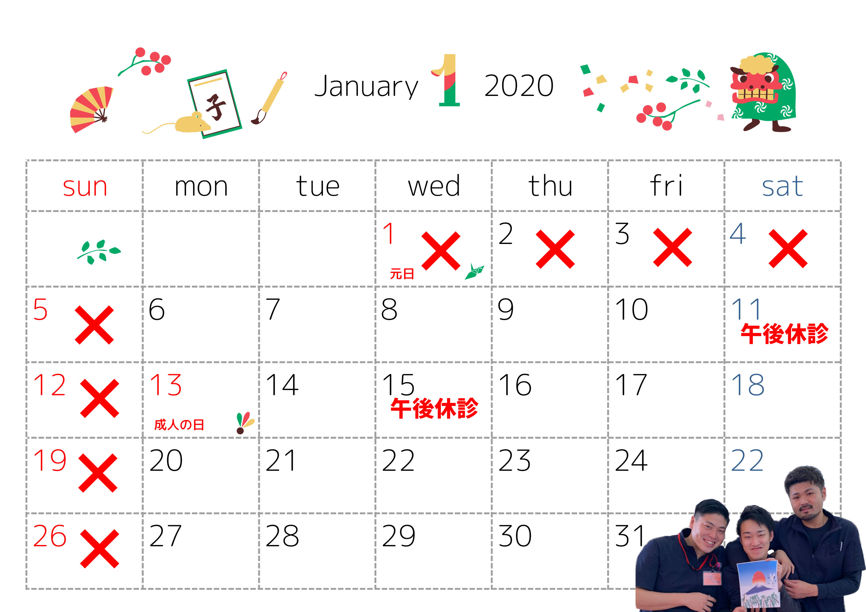 1月休診日のお知らせ