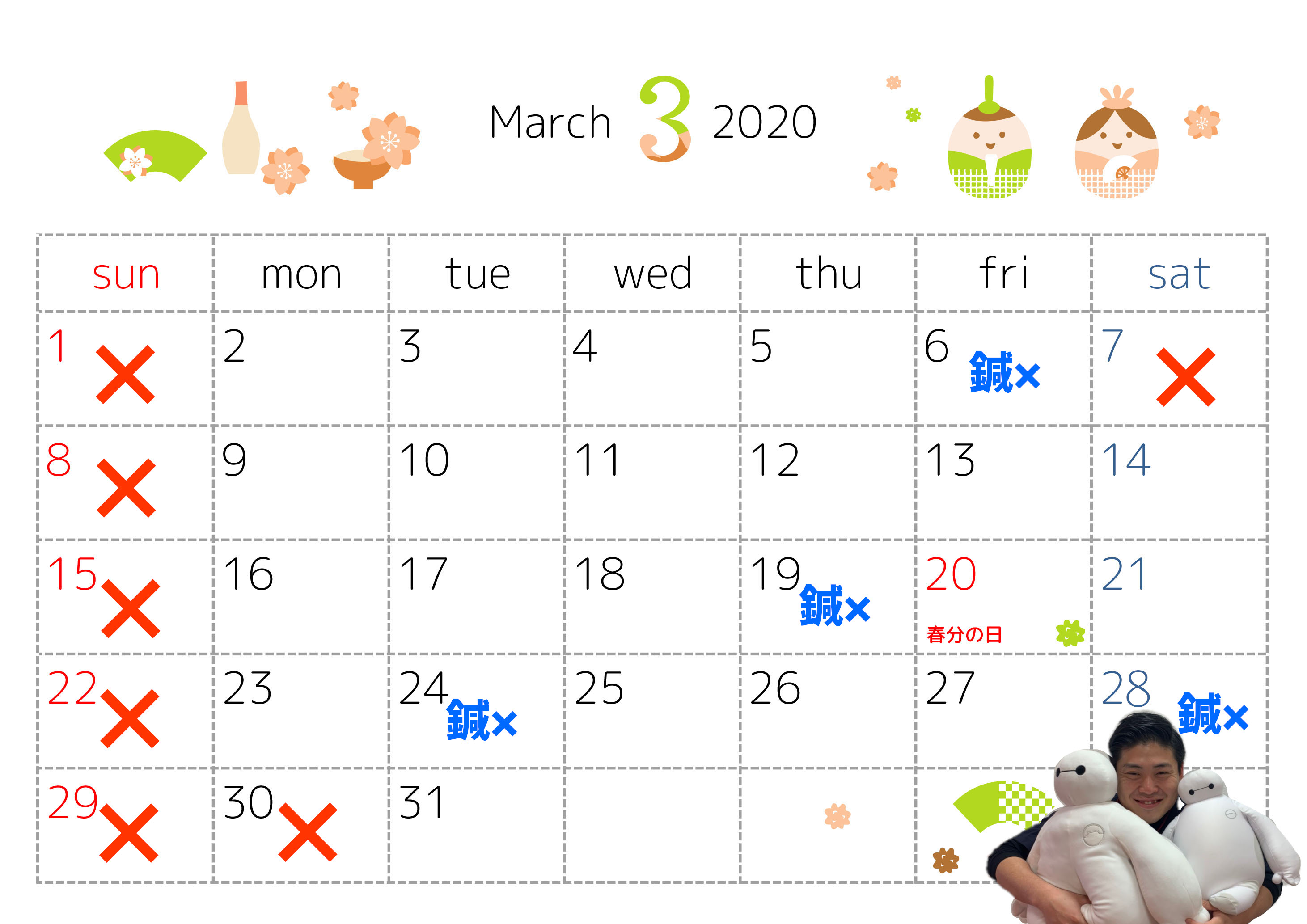 3月休診日のお知らせ - まいれ鍼灸整骨院・整体院 草津院・南草津院