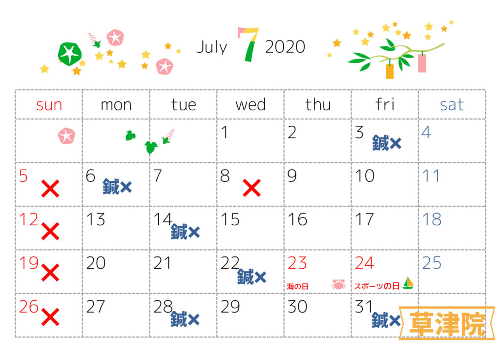 7月休業日のお知らせ - まいれ鍼灸整骨院・整体院 草津院・南草津院